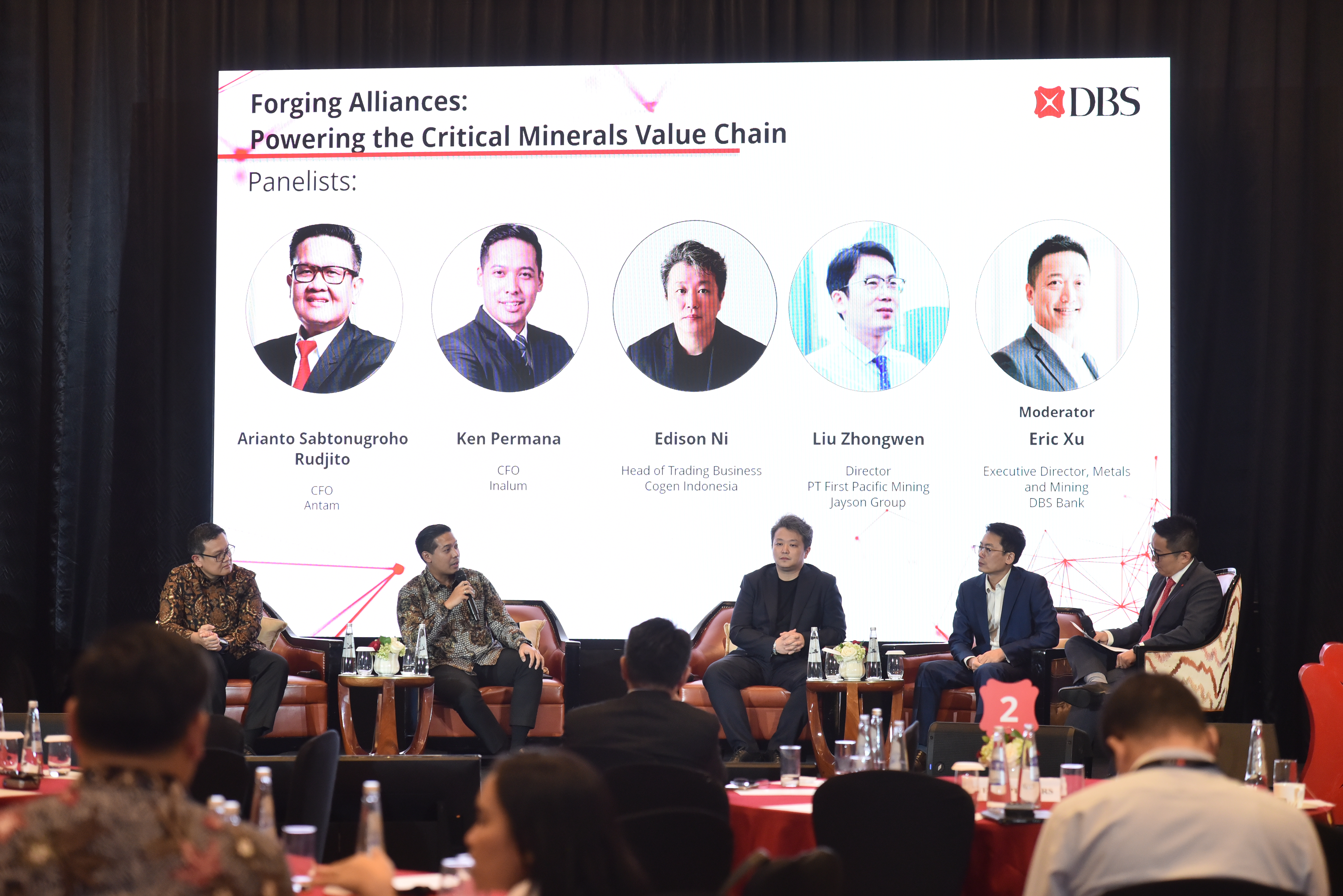 Indonesia’s emergence as a central player in the global critical minerals ecosystem was a key theme of the panel discussion “Forging Alliances: Powering the Critical Minerals Value Chain” at the 4th Annual DBS Metals and Mining Indonesia Forum: Forging Global Connections. The session brought together senior industry leaders whose strategic decisions shape both Indonesia’s domestic minerals development and its cross-border investment outlook: Arianto Sabtonugroho Rudjito, Chief Financial Officer (CFO) of PT Aneka Tambang Tbk (Antam); Ken Permana, CFO of PT Indonesia Asahan Aluminium (Inalum); Edison Ni, Head of Trading Business at Cogen Indonesia; and Liu Zhongwen, Director at PT First Pacific Mining Jayson Group. The discussion was moderated by Eric Xu, Executive Director for Metals and Mining at DBS Bank.
