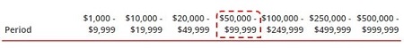 With the new S$40,000 placement, the total FD account balance will be S$59,999 (S$19,999 + S$40,000). Hence, interest rate corresponding to the $50,000 - $99,999 range will apply