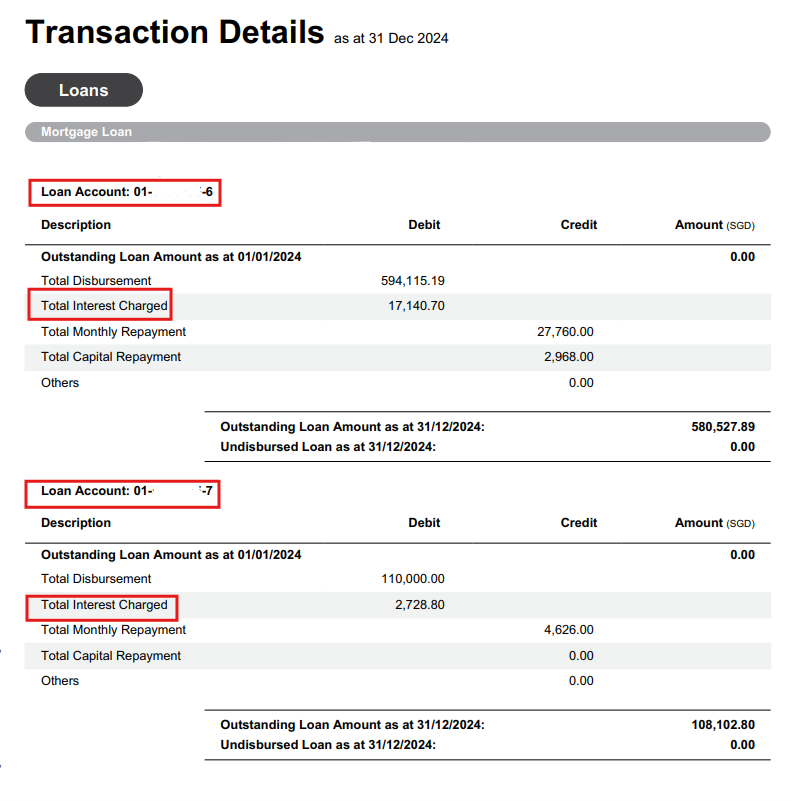 - If you have multiple sub-loans, refer to both sub-loan accounts in the December Consolidated statement or eStatement to add up the Total Interest Charged respectively.