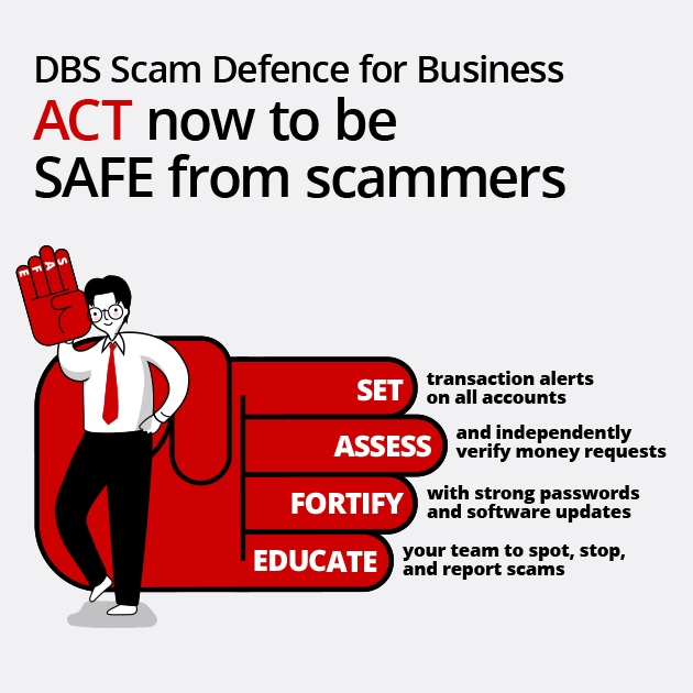 Your security is our priority. DBS Scam Defence is our multi-layered approach to protecting you and your business against scammers. From security features to regular updates and 24/7 support, we help your business bank safer.