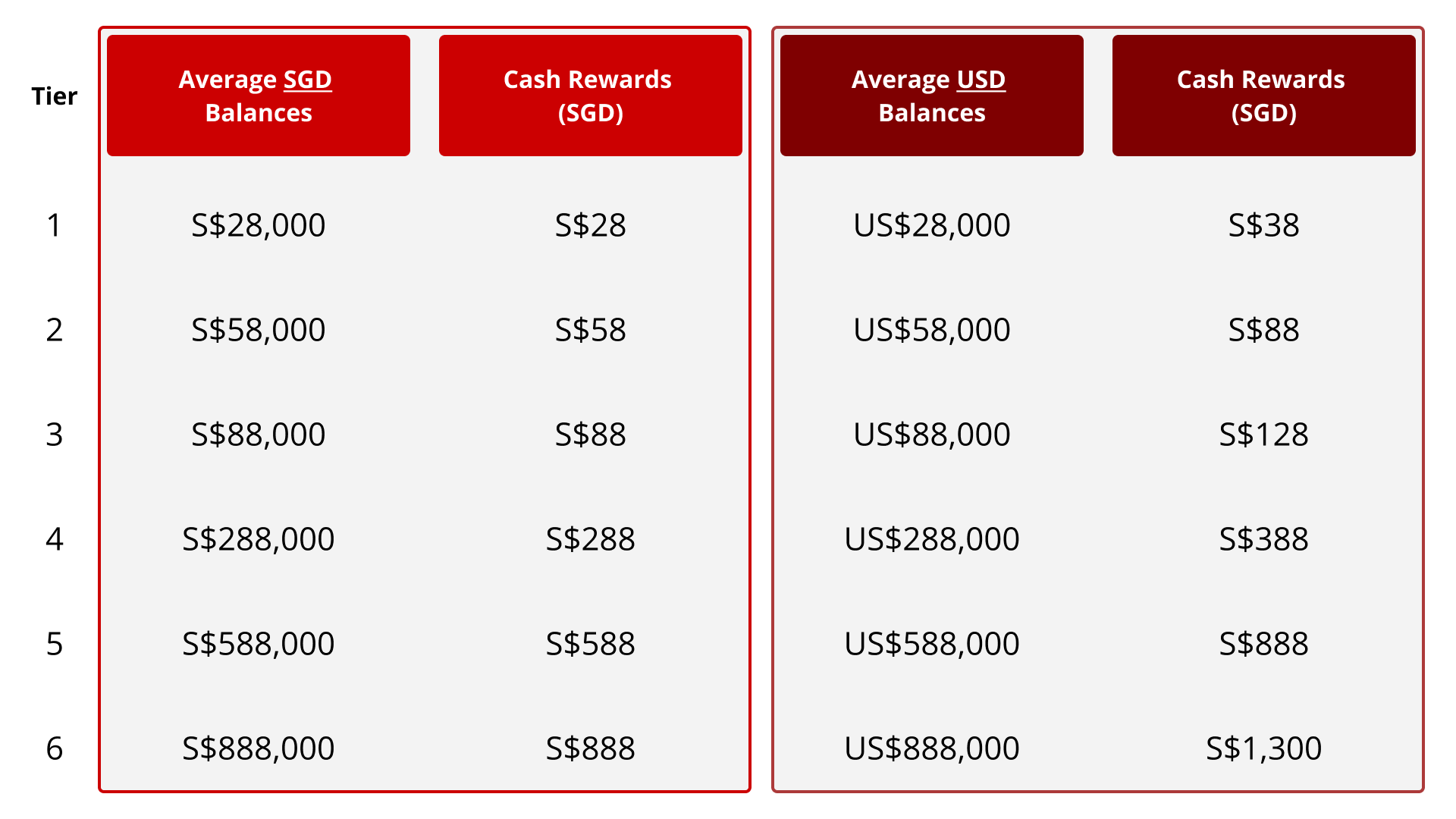 Each qualifying customer will be eligible for a cash reward and lucky draw chance(s) according to their Average Account Balances.